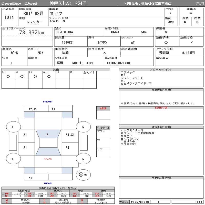 TOYOTA TANK 4WD G - лот 1014