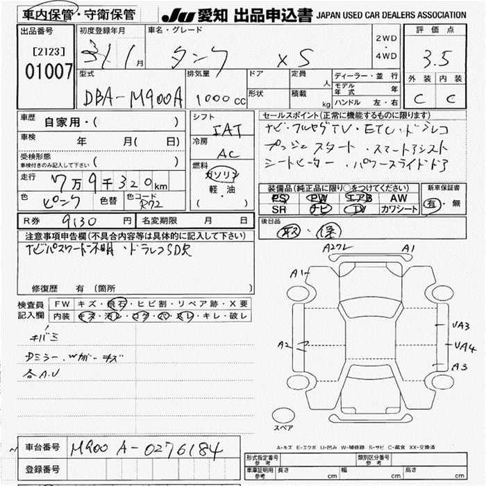 TOYOTA TANK X S - лот 1007