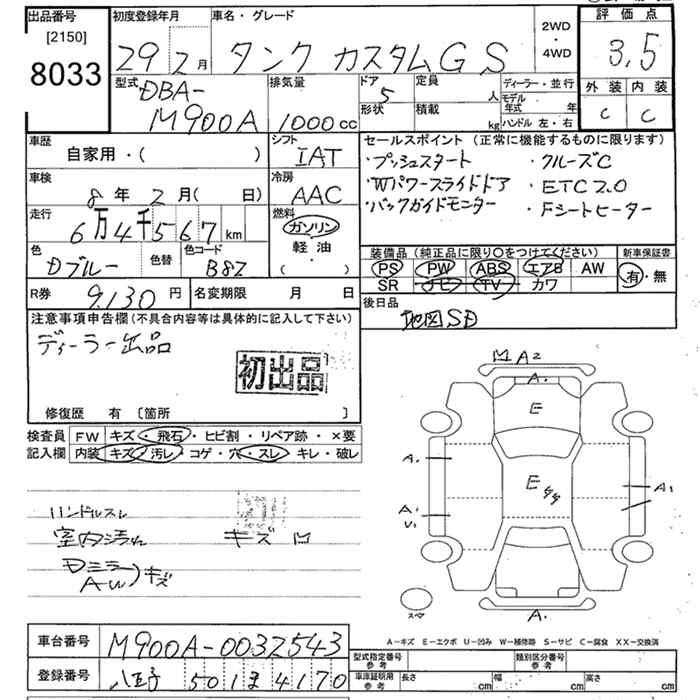 TOYOTA TANK CUSTOM G S - лот 8033