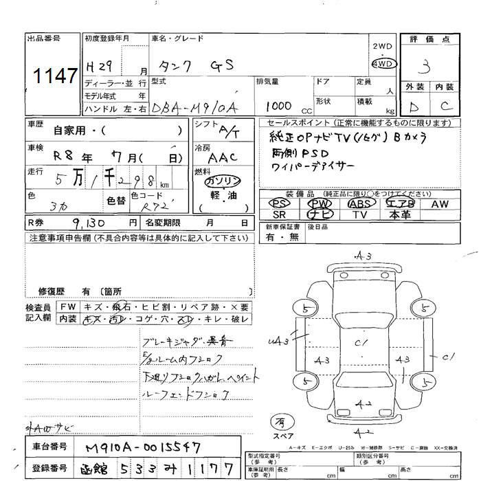 TOYOTA TANK 4WD G S - лот 1147