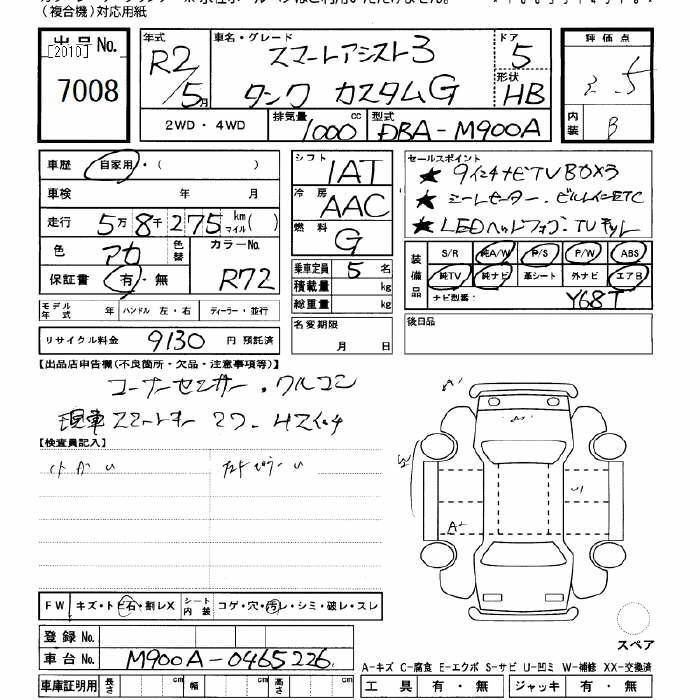 TOYOTA TANK CUSTOM G SMART ASSIST 3 - лот 7008