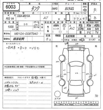 TOYOTA TANK 4WD CUSTOM G - лот 6003