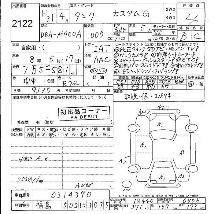 TOYOTA TANK CUSTOM G - лот 2122