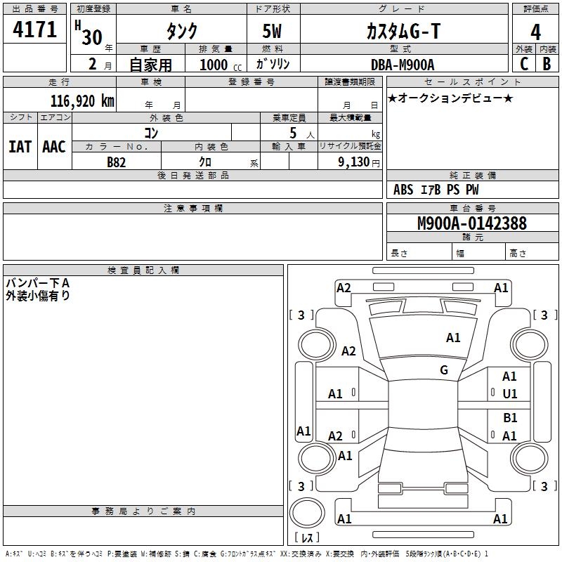 TOYOTA TANK CUSTOM G-T - лот 4171