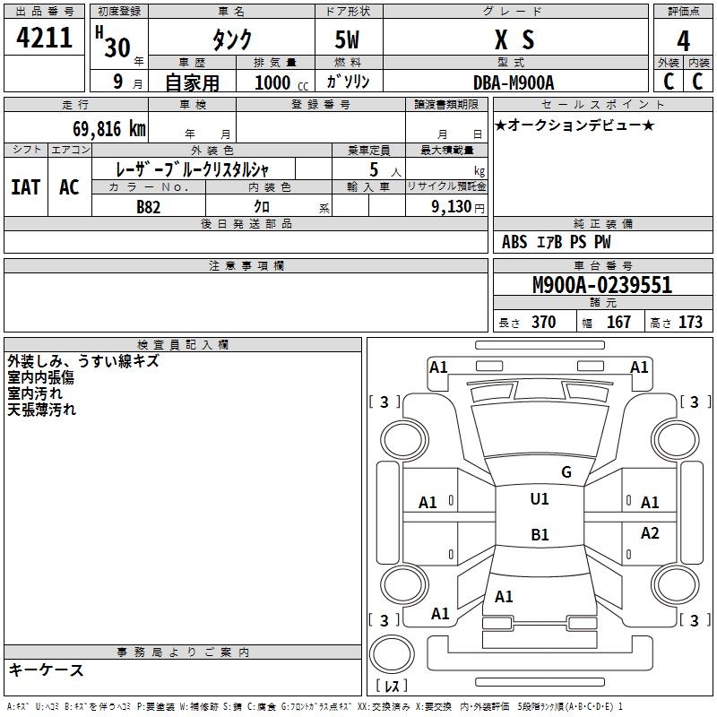 TOYOTA TANK X S - лот 4211