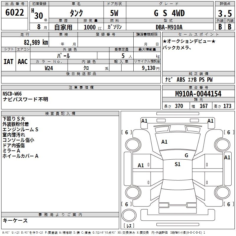 TOYOTA TANK G S 4WD - лот 6022