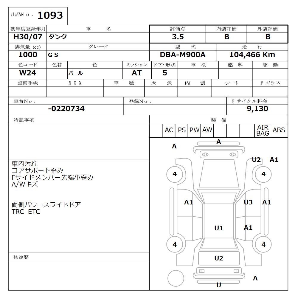 TOYOTA TANK G S - лот 1093