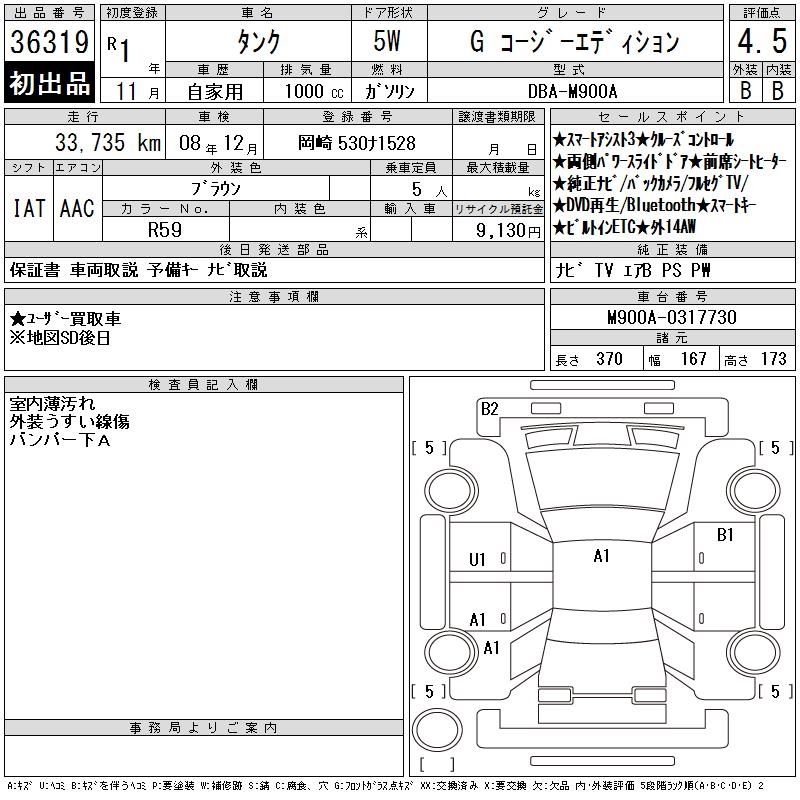 TOYOTA TANK G COZY EDITION - лот 36319