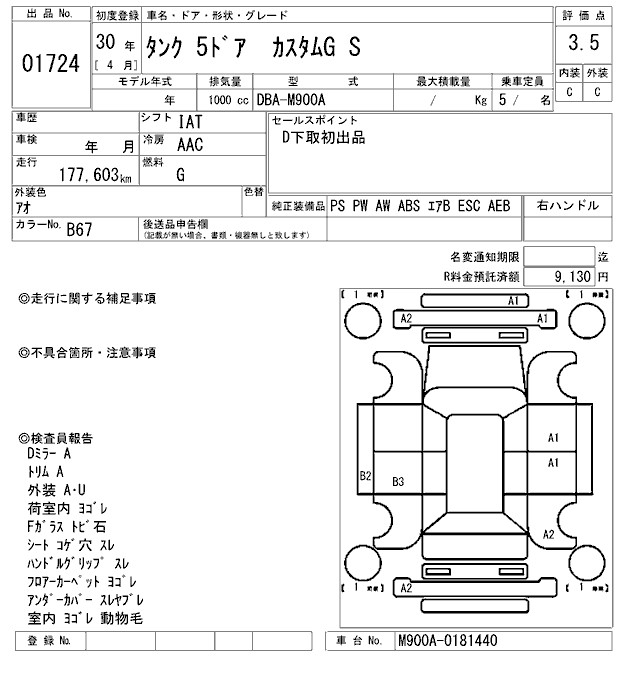TOYOTA TANK CUSTOM G S - лот 1724