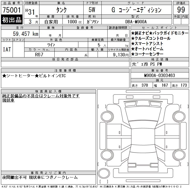 TOYOTA TANK G COZY EDITION - лот 75001