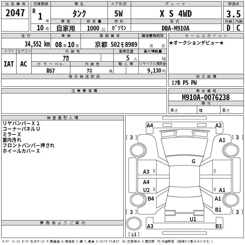 TOYOTA TANK X S 4WD - лот 2047