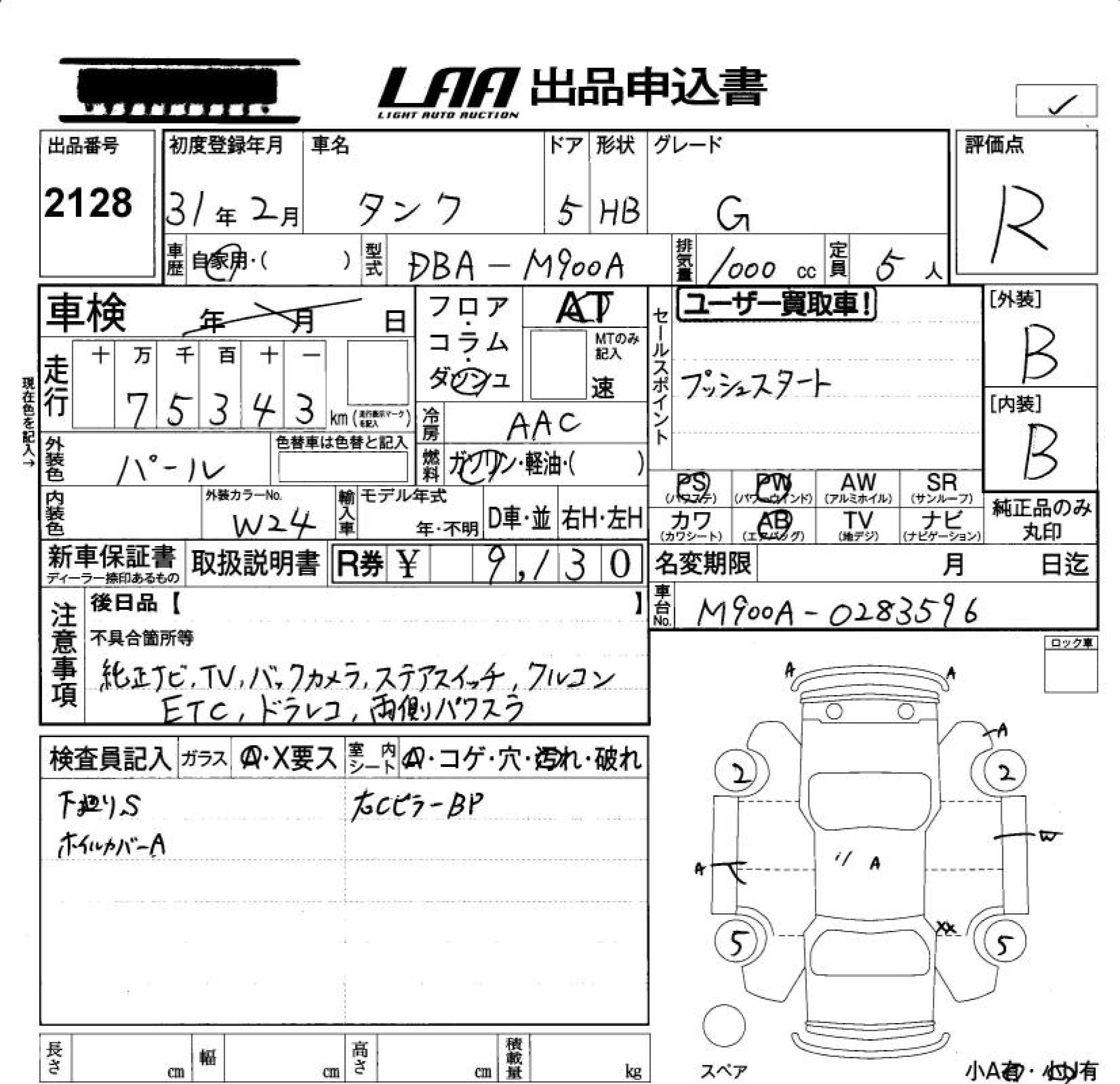 TOYOTA TANK G - лот 2128