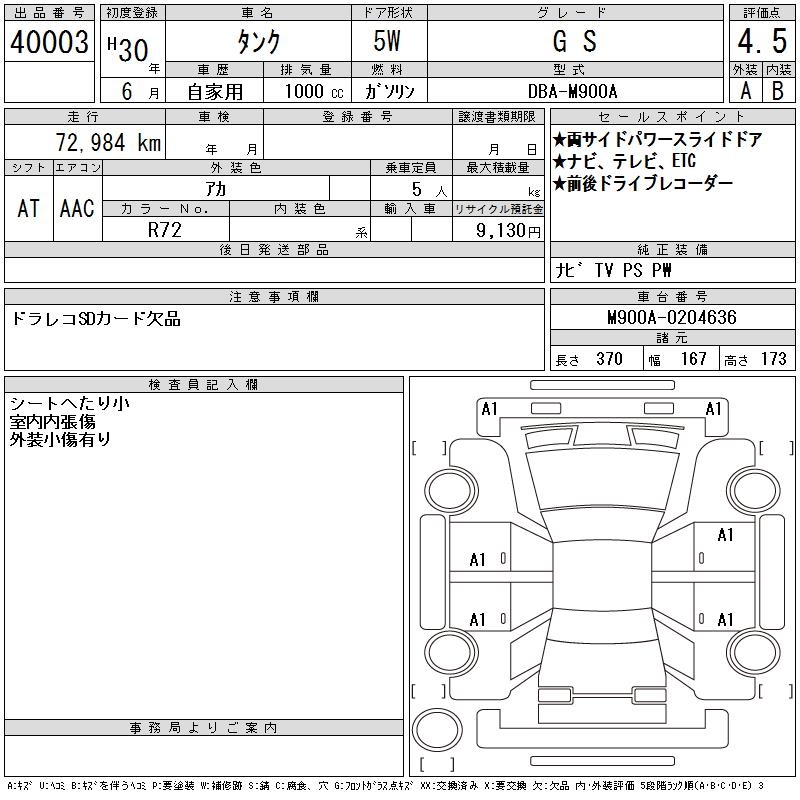 TOYOTA TANK G S - лот 40003