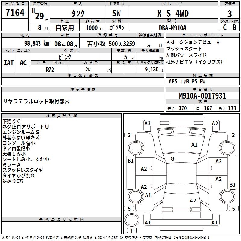 TOYOTA TANK X S 4WD - лот 7164