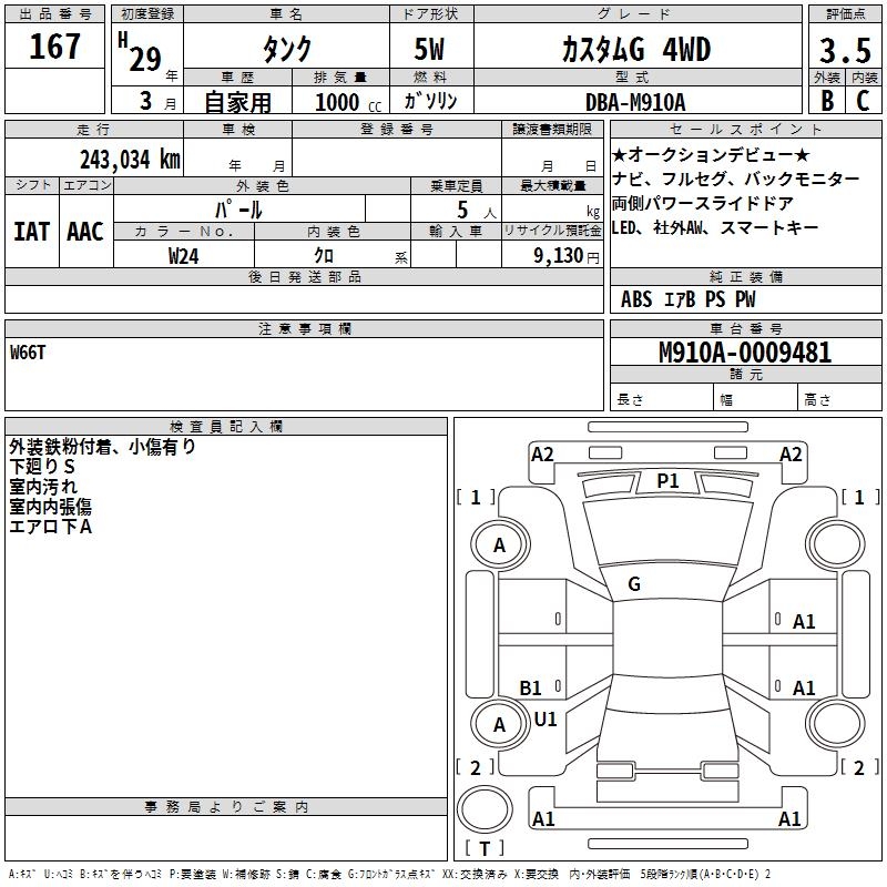 TOYOTA TANK CUSTOM G 4WD - лот 167