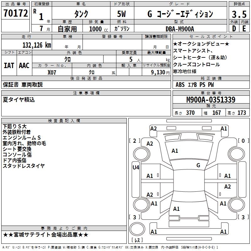 TOYOTA TANK G cozy выпуск - лот 70172