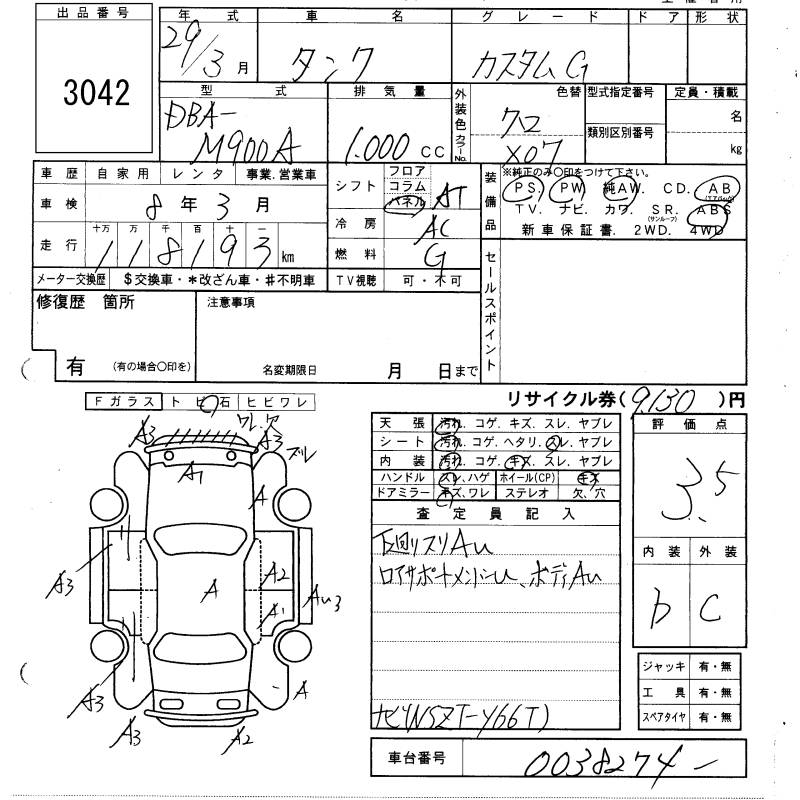 TOYOTA TANK - лот 3042
