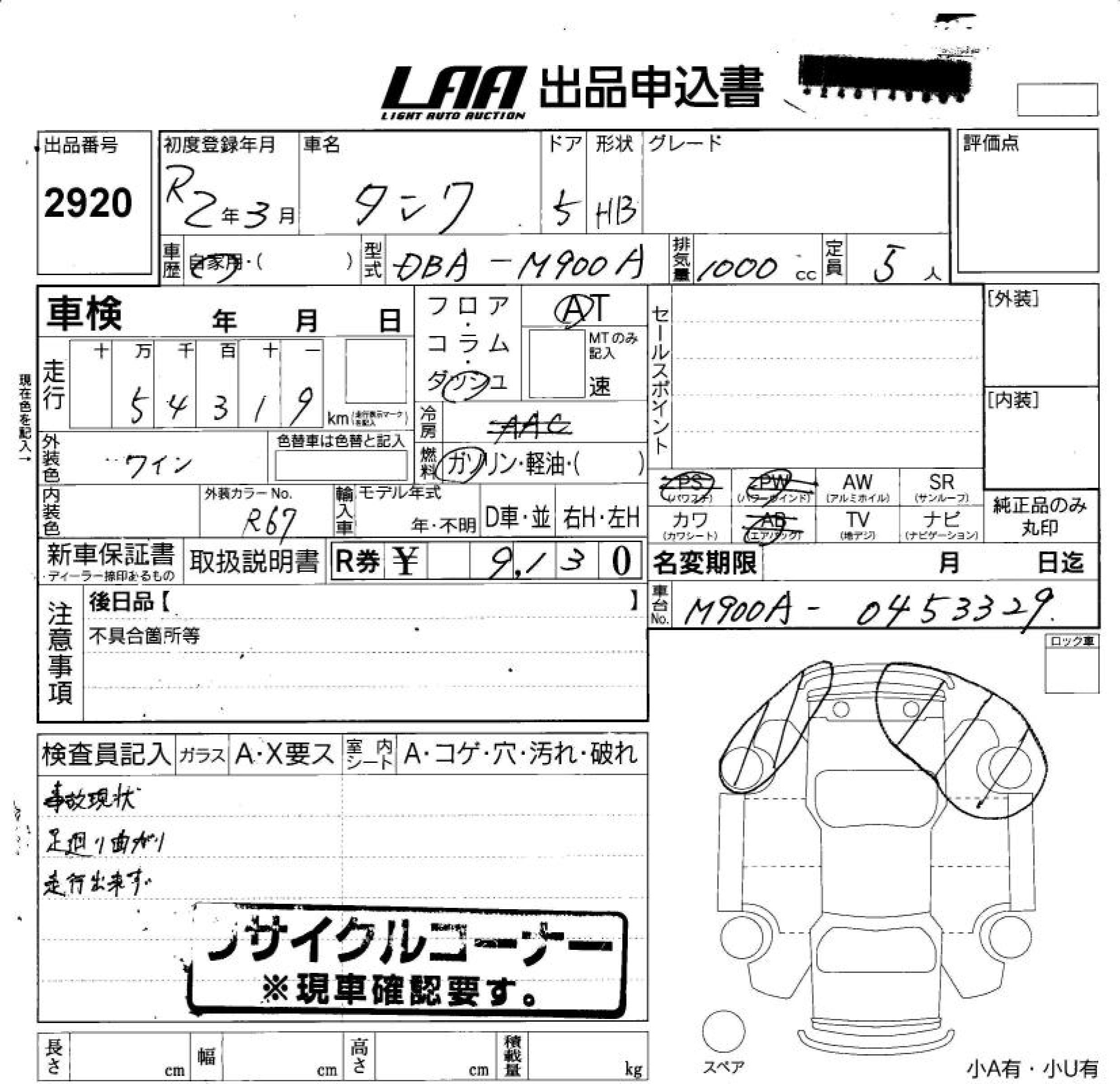 TOYOTA TANK - лот 2920