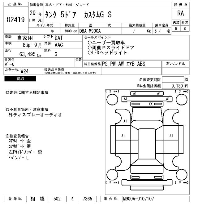 TOYOTA TANK CUSTOM G S - лот 2419