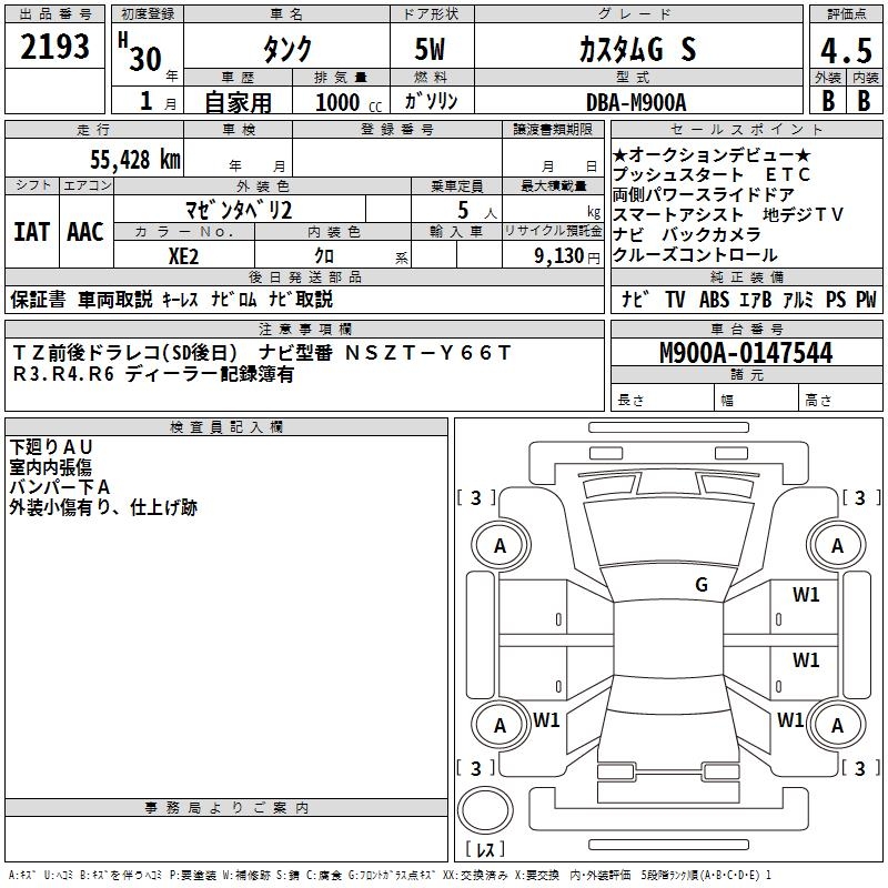 TOYOTA TANK CUSTOM G S - лот 2193