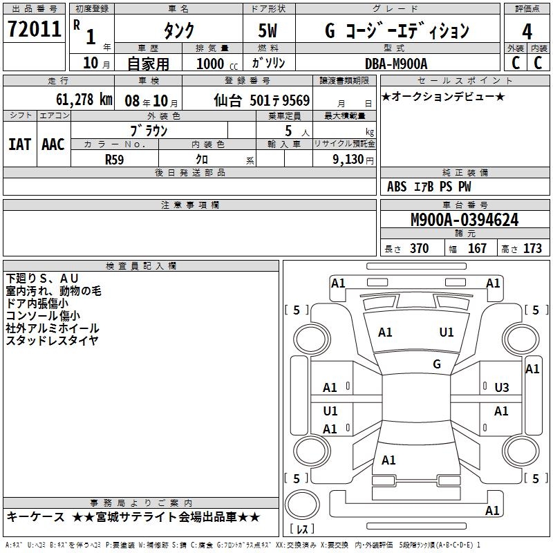 TOYOTA TANK G COZY EDITION - лот 72011