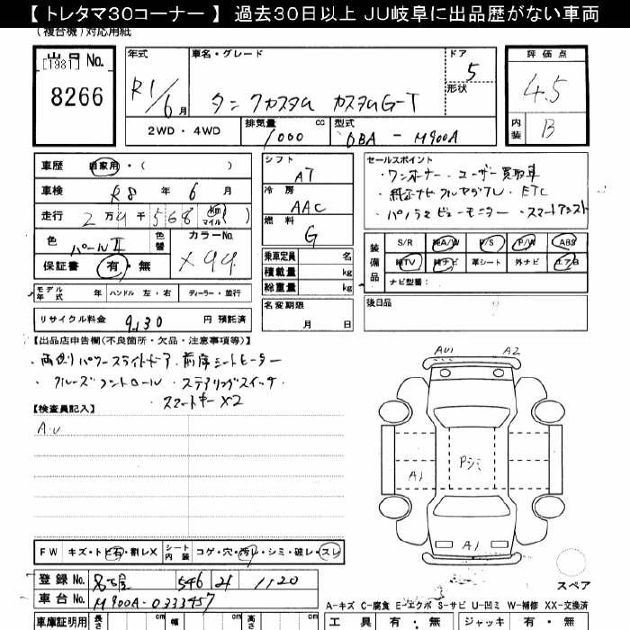 TOYOTA TANK CUSTOM G-T - лот 8266