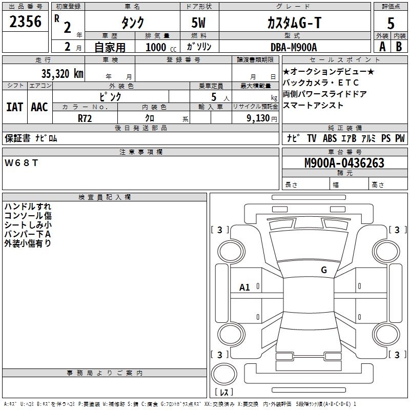 TOYOTA TANK CUSTOM G-T - лот 2356