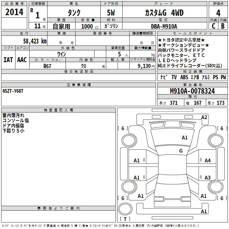 TOYOTA TANK CUSTOM G 4WD - лот 2014