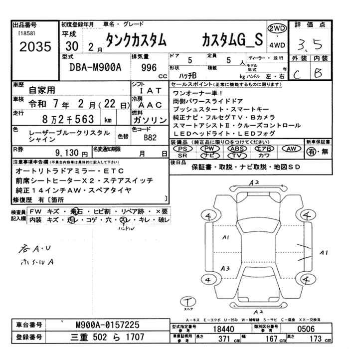 TOYOTA TANK CUSTOM G S - лот 2035
