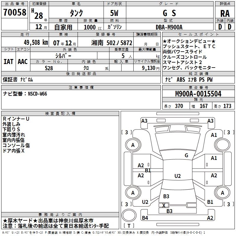 TOYOTA TANK G S - лот 70058