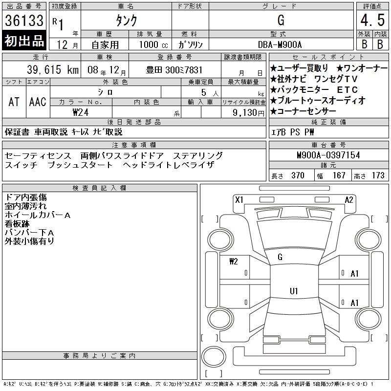 TOYOTA TANK G - лот 36133