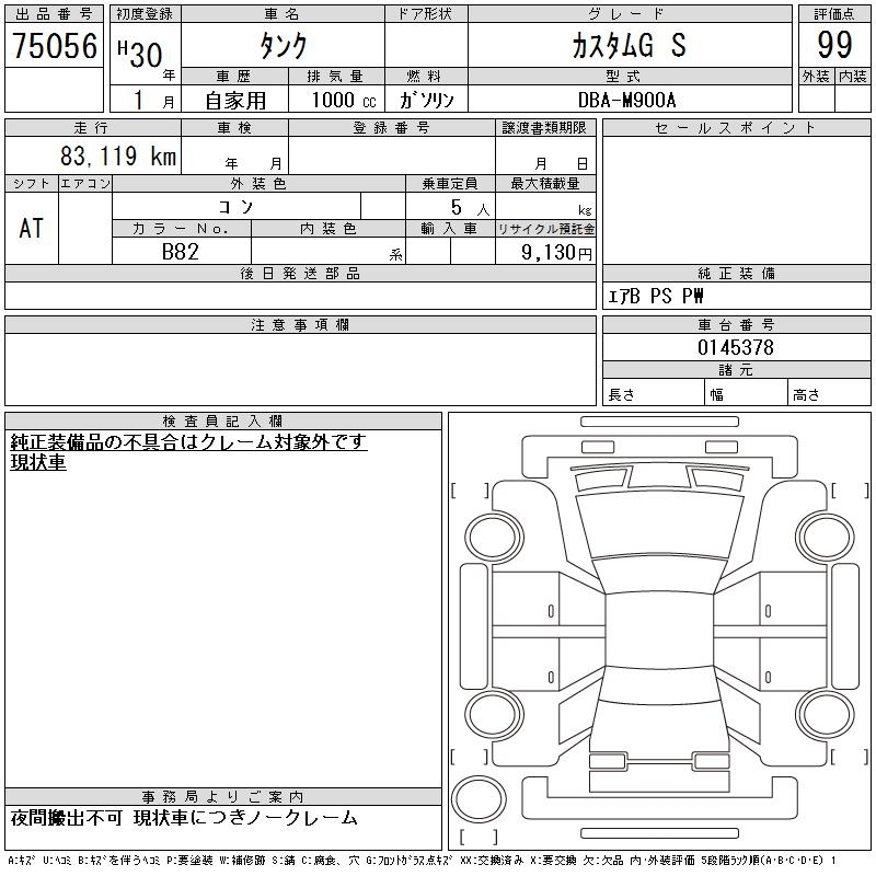 TOYOTA TANK CUSTOM G S - лот 75056