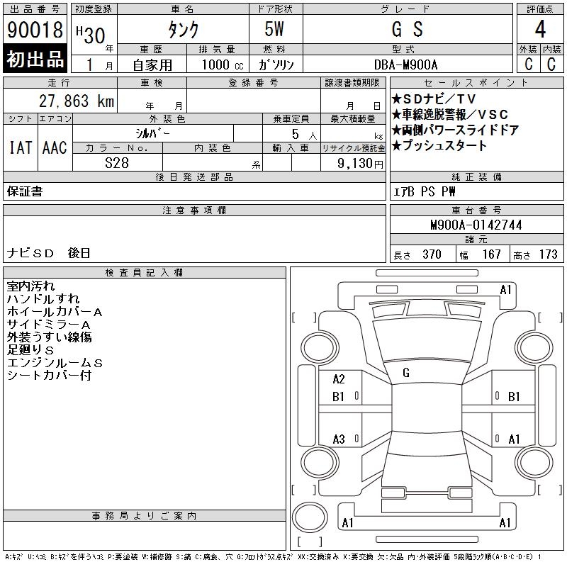 TOYOTA TANK G S - лот 90018