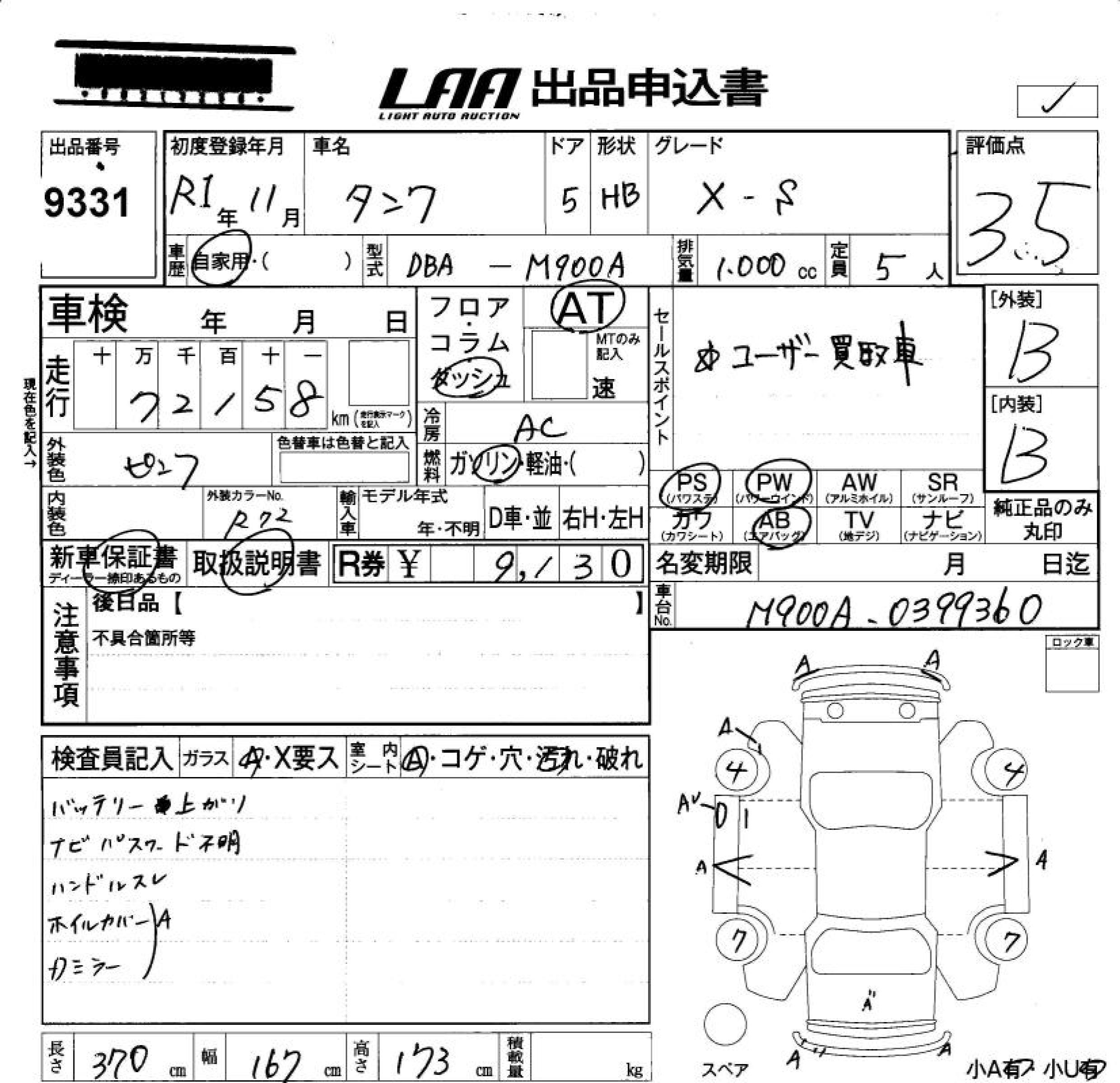 TOYOTA TANK X S - лот 9331