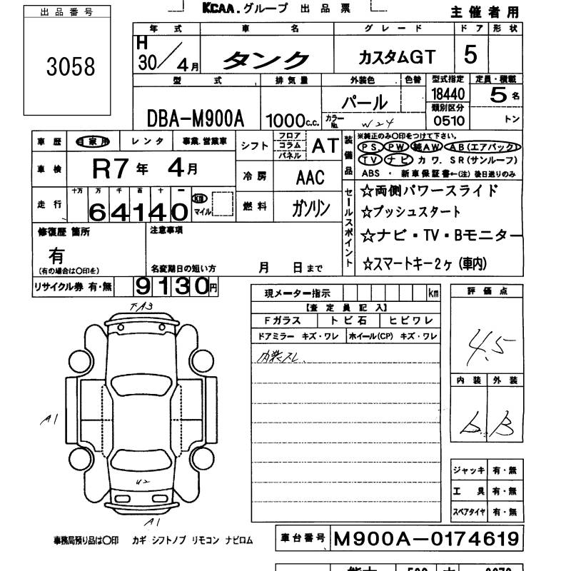 TOYOTA TANK CUSTOM G-T - лот 3058