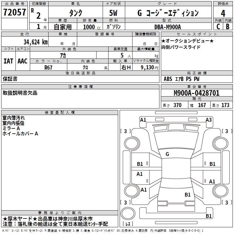 TOYOTA TANK G COZY EDITION - лот 72057