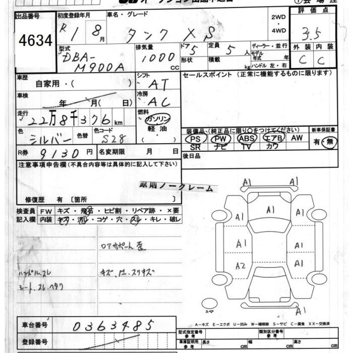 TOYOTA TANK X S - лот 4634