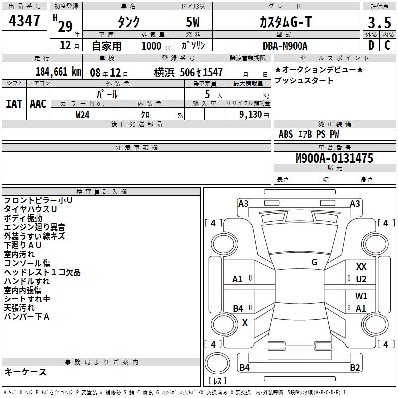 TOYOTA TANK CUSTOM G-T - лот 4347