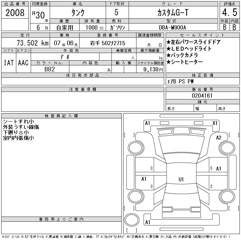 TOYOTA TANK CUSTOM G-T - лот 2008