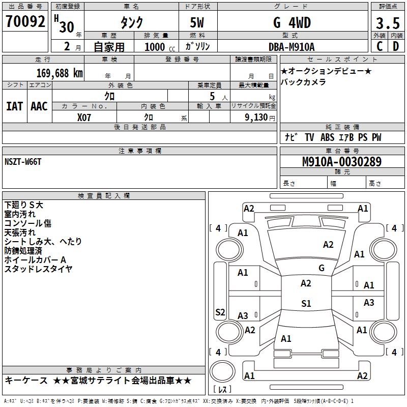 TOYOTA TANK G 4WD - лот 70092