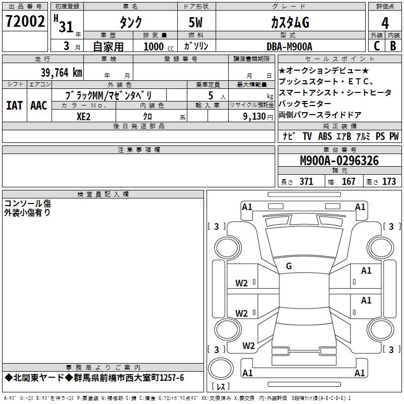 TOYOTA TANK CUSTOM G - лот 72002