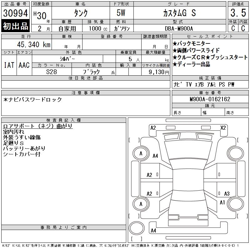 TOYOTA TANK CUSTOM G S - лот 30994