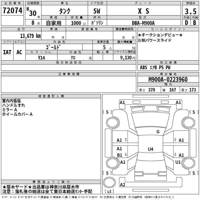 TOYOTA TANK X S - лот 72074