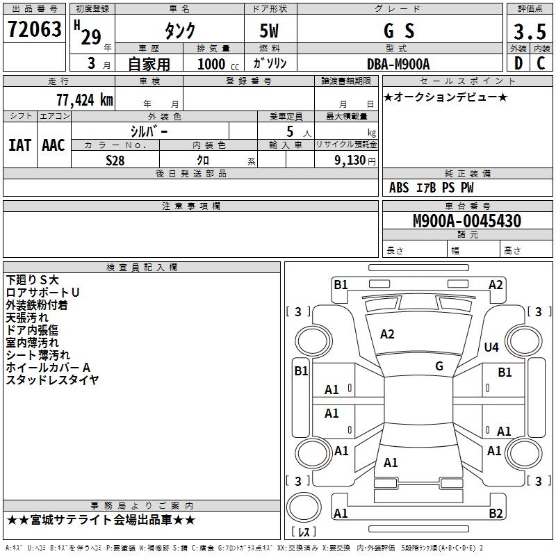 TOYOTA TANK G S - лот 72063