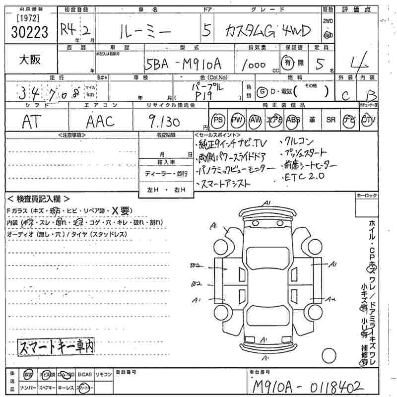 TOYOTA TANK CUSTOM G 4WD - лот 30223