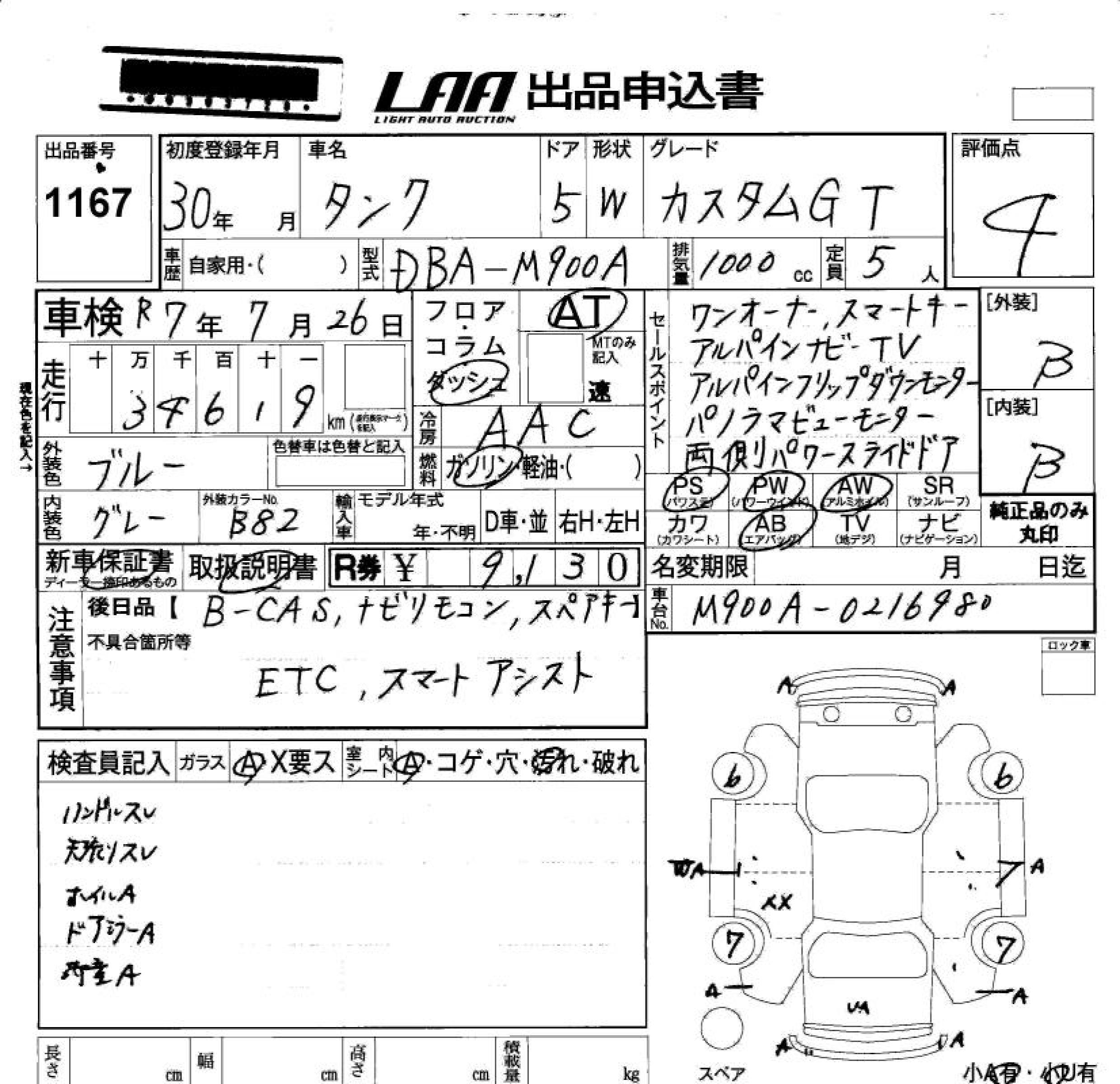 TOYOTA TANK CUSTOM G-T - лот 1167