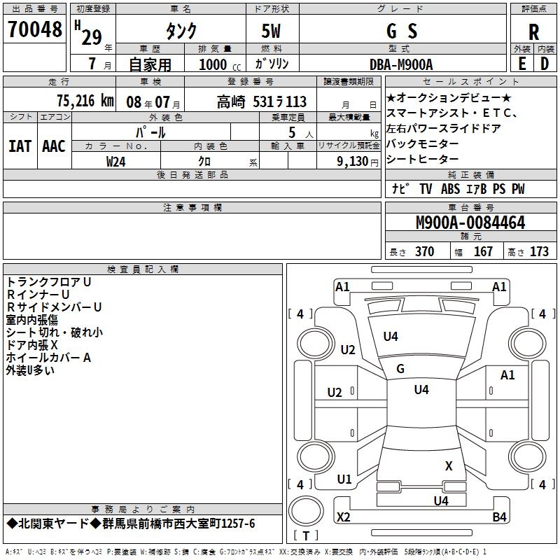 TOYOTA TANK G S - лот 70048