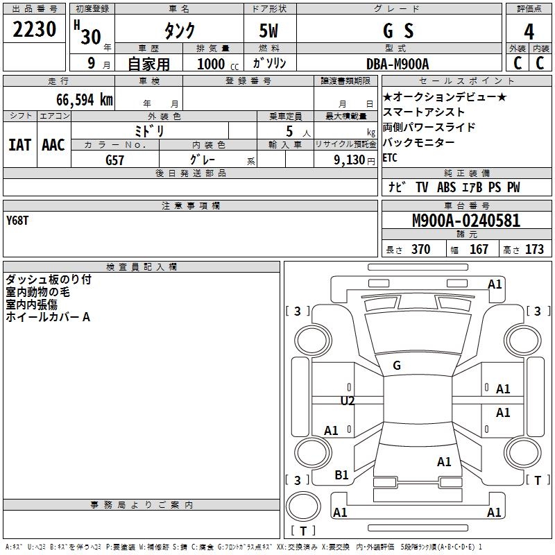 TOYOTA TANK G S - лот 2230