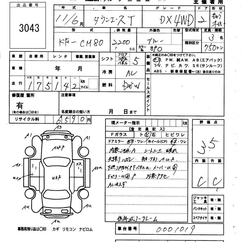TOYOTA TOWN ACE TRUCK DX 4WD - лот 3043