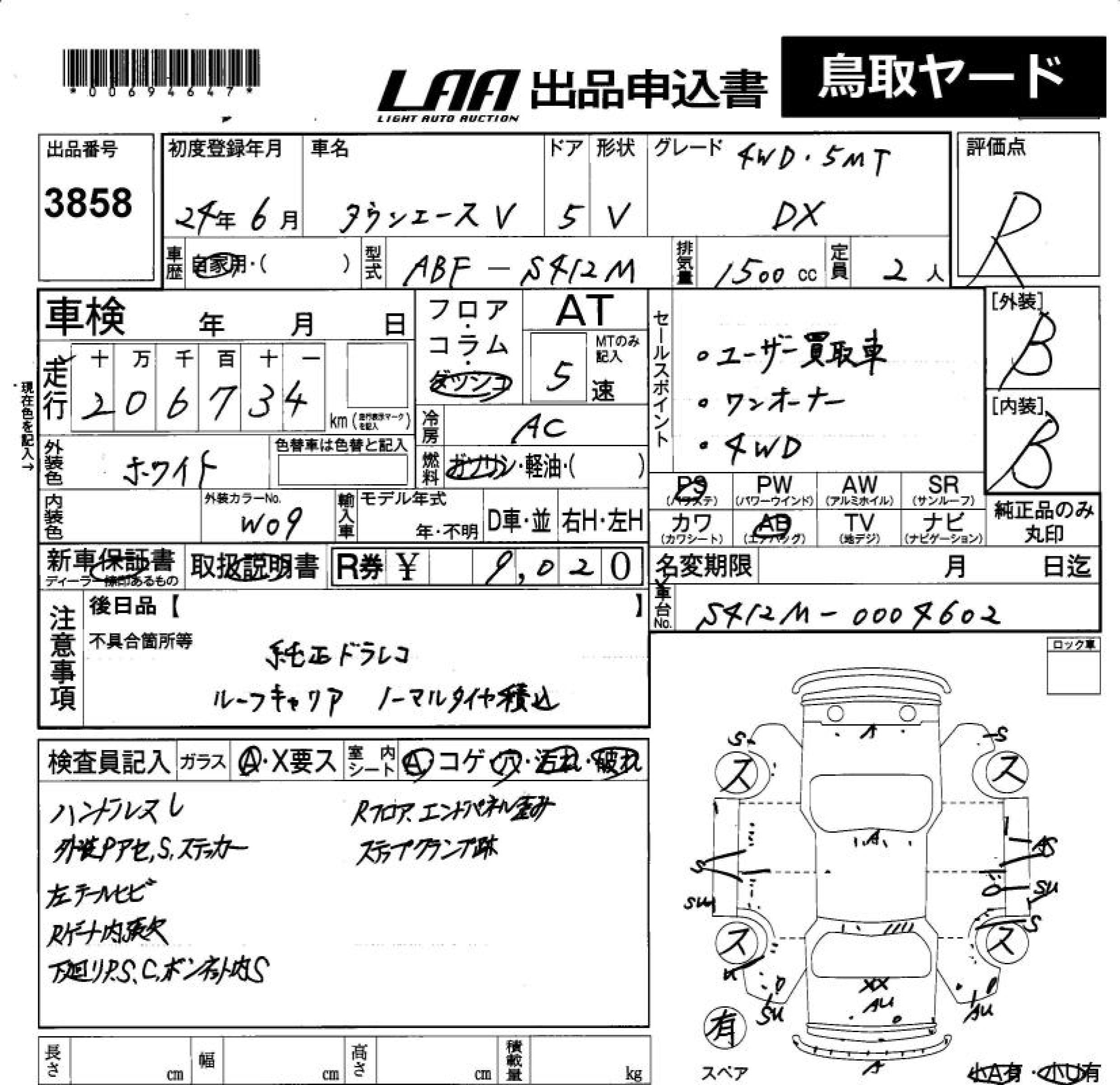 TOYOTA TOWN ACE VAN DX 4WD*5MT - лот 3858